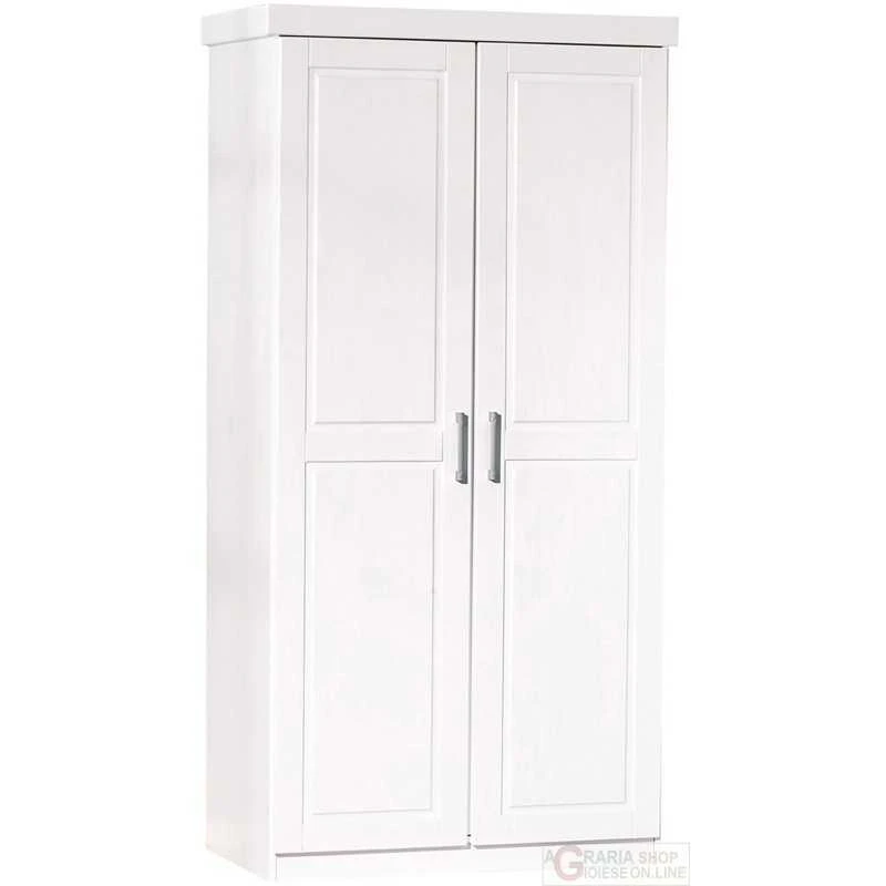 ARMADIO 2 ANTE CON RIPIANI IN PINO MASSELLO BIANCO cm. 95x55x190H