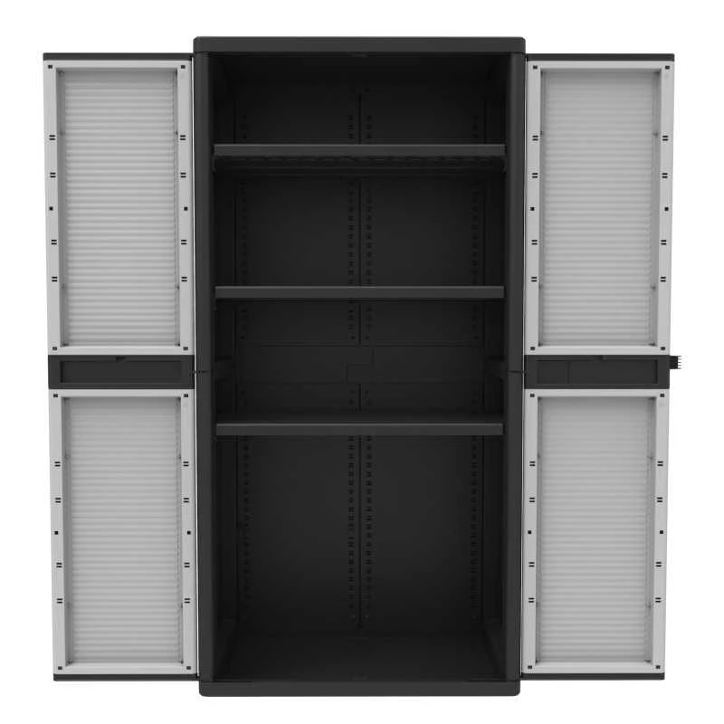 Doppia anta, tre ripiani interni regolabili in altezza.
