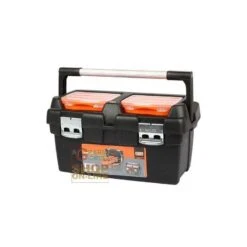 Una cassetta degli attrezzi robusta. Dimensioni 500x295x270mm. Volume 27L. La maniglia in alluminio, metallisalvat, 2 accessorio copertura organizzato rimovibile, includono vassoio portautensili estraibile.
