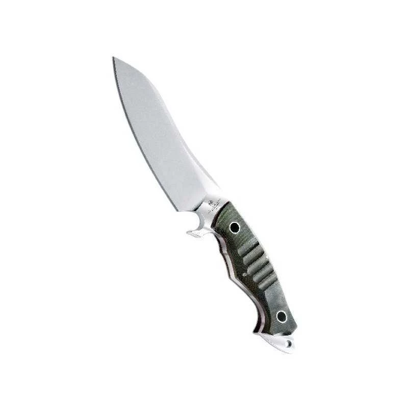Coltello da collezione disegnato da Jesper Voxnaes. La lama con la sua finitura two tone in acciaio 440C. Impugnatura in Micarta con fresature per assicurare la presa, lo strato di fibra rossa aggiunge l’accento di colore. Fornito in scatola regalo con certificato e fodero in cuoio. Disponibile da giugno 2011.
