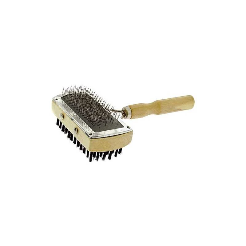 Cardatore semplice doppio in legno con punte e spazzola per cani e gatti