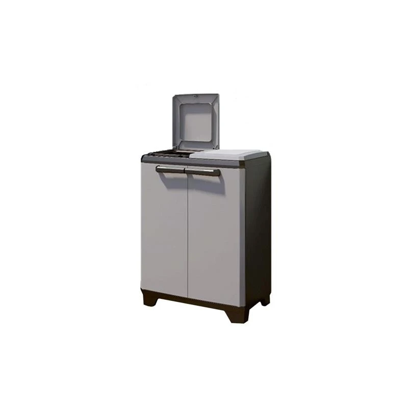 - Mobile per la raccolta differenziata mobile porta-rifiuti in resina la speciale composizione in resina del prodotto gli permette di essere esposto alle intemperie e ai raggi uv senza deteriorarsi e scolorirsi. 2 vani porta sacco con apertura a pressione maniglie ergonomiche soft touch piedini regolabili per posizionare in piano l’armadio (utile soprattutto in caso di piastrelle non livellate). Per semplificarne il montaggio della parte superiore kis ha provveduto ad imballare il coperchio montato in modo che risulti più semplice da parte dell’utente finale completarne l’assemblaggio. Set di etichette per coperchi inclusa nella confezione. Colore grigio impermeabile al 100% e il suo contenuto sarà sempre asciutto. Struttura molto robusta. L’armadio alto stilo è adatto ad organizzare spazi in ogni tipo di contesto dimensioni larghezza 68cm profondità 39cm altezza 92cm .