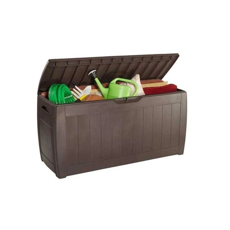- Compatto ma pratico, il baule contenitore Hollywood offre una soluzione ideale per riporre i giochi da giardino e gli accessori per il portico. La sua struttura effetto legno apporta un vero tocco di stile in qualsiasi spazio esterno. Grazie alla struttura resistente all’usura e agli agenti atmosferici in grado di resistere alla ruggine, alle ammaccature e alle muffe, manterrà un aspetto splendido per molti anni. Per facilità d’uso è dotato di impugnature laterali per una facile trasportabilità, mentre il coperchio chiudibile con lucchetto mantiene il contenuto sicuro giorno e notte.