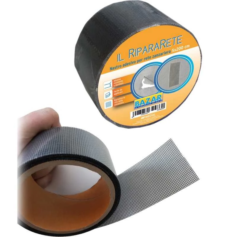 - in fibra di vetro, adesivo ad alta resistenza. Per la riparazione di teli di zanzariere da strappi, tagli e graffi. Altezza 50 mm. Rotolo da 2 m