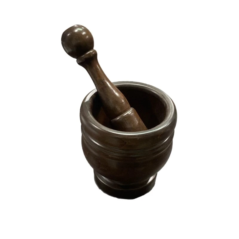 - Mortaio in legno a forma di calice con dimensioni 16 x 15 cm. Ideale per pestare, ridurre in polvere e mescolare sostanze solide.