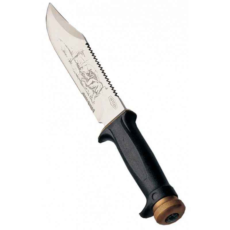 Paolucci Pugnale con manico nero con bussola e kit sopravvivenza lama inox cm. 22