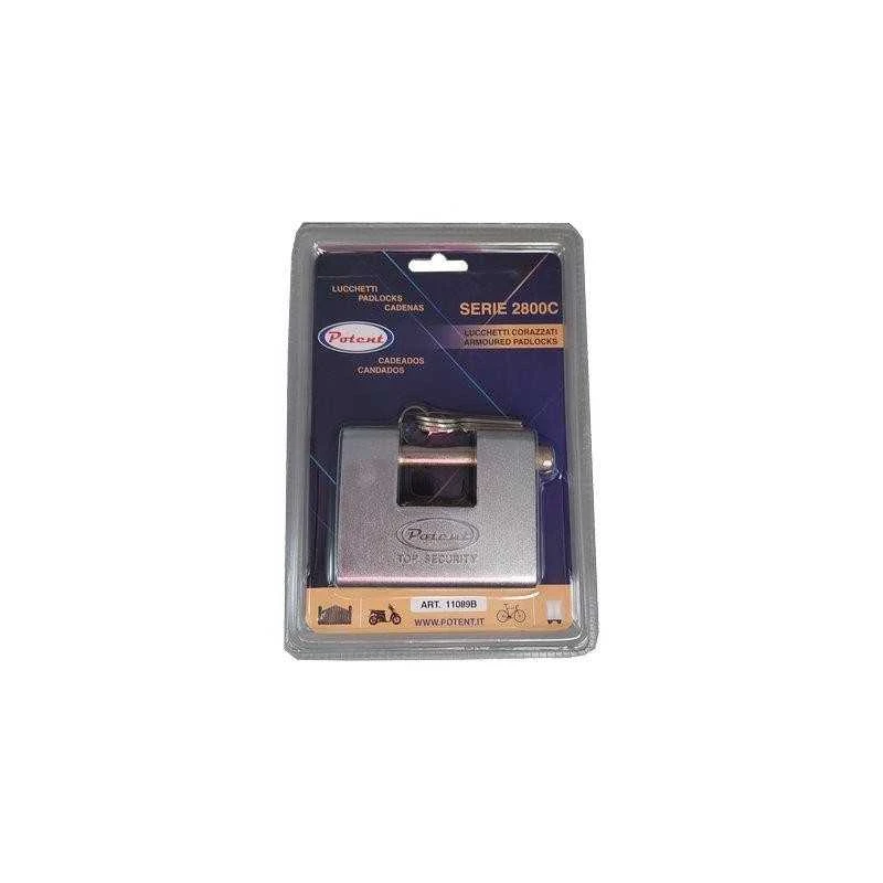 POTENT LUCCHETTO ANTISCASSO CORAZZATO 110B IN OTTONE ACCIAIO CROMATO CHIAVI 3 MM. 80
