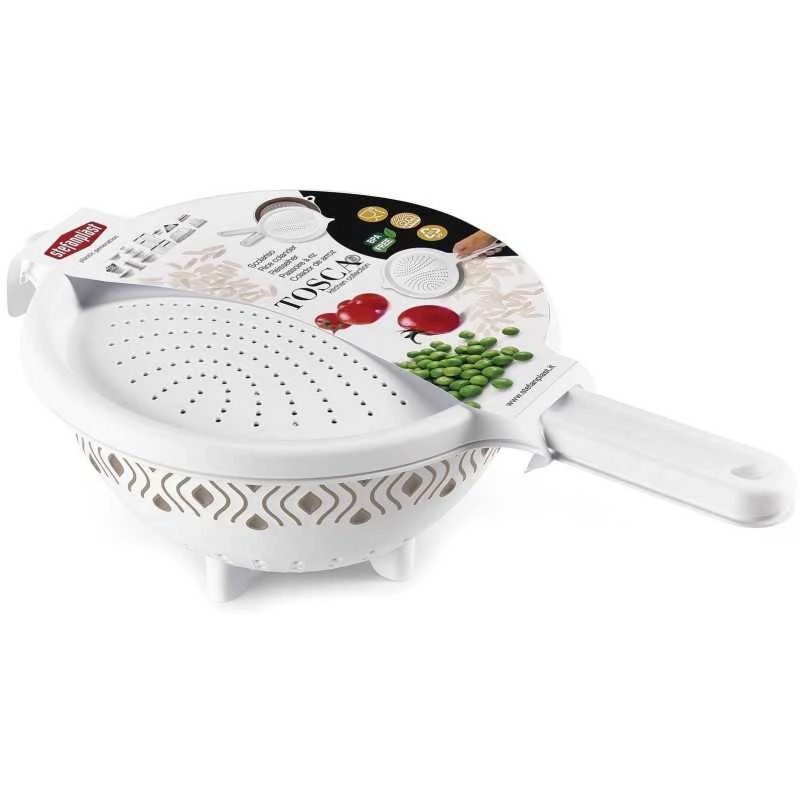 - Lo scolariso è ideale per colare riso, ma anche legumi e cereali, frutta e verdura. E’ dotato di coperchio micro-forato per una maggiore asciugatura ed è provvisto di un pratico occhiello per essere appeso. Realizzato con materiali di alta qualità, BPA free, può essere lavato in lavastoviglie.