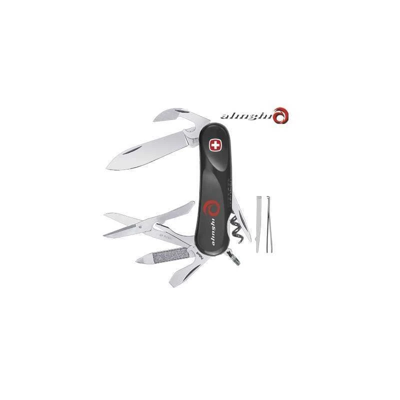 Progettata per adattarsi ai contorni della mano umana perfettamente che crea una presa più salda e rende ogni coltello più sicuro e più preciso. Alinghi Souvenir.X coltellino svizzero.
